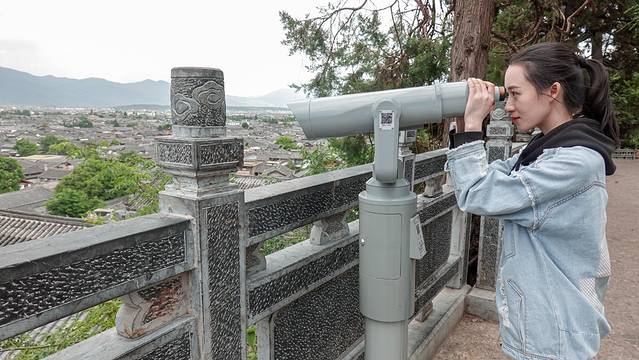 狮子山很矮,一小会儿就爬到了山顶。古城建筑群依山随势环绕在狮子山脚,这里是观赏丽江古城全景的最佳去处。