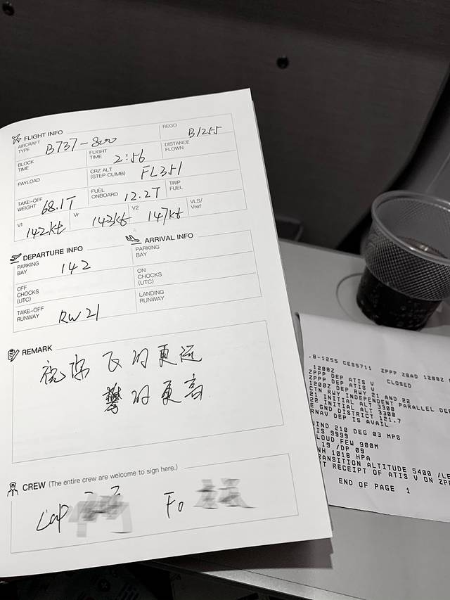 在我的飞行日志里,本次航班的机长留言:祝你飞的更远 攀的更高。
