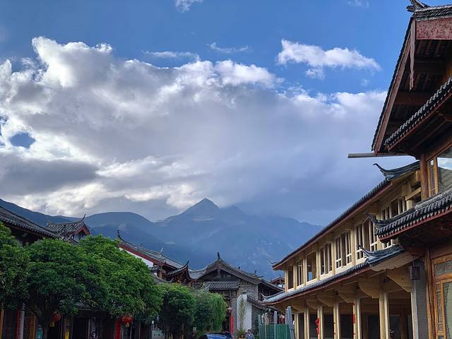 看完壁画,继续在白沙古镇溜达,远处是玉龙雪山,已经看不到雪线了。