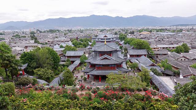 木府背靠狮子山,一路走上去,不仅可以看到木府建筑群,还能眺望古城村落。