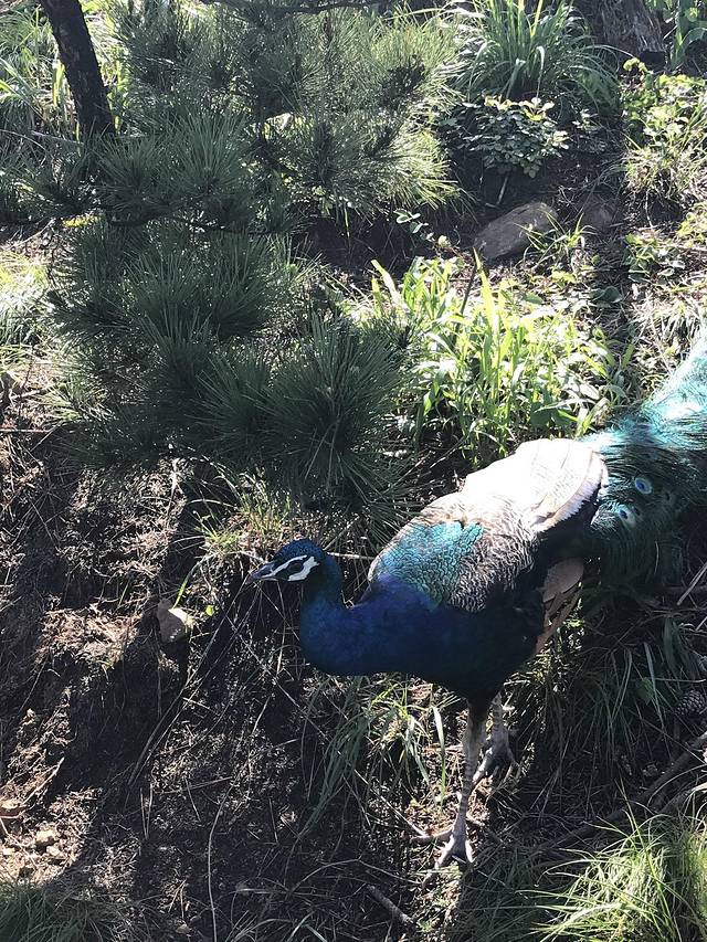 首先见到的是孔雀,一直走到猛兽区入口,路两边的围挡里都是孔雀。景区木头步梯旁有10元/位的传送带,可将人送上小山头去走高空玻璃桥(单独收费)。不爬木头梯子,沿着大路往前走也可以到达猛兽区入口(带老人的话推荐这么走)