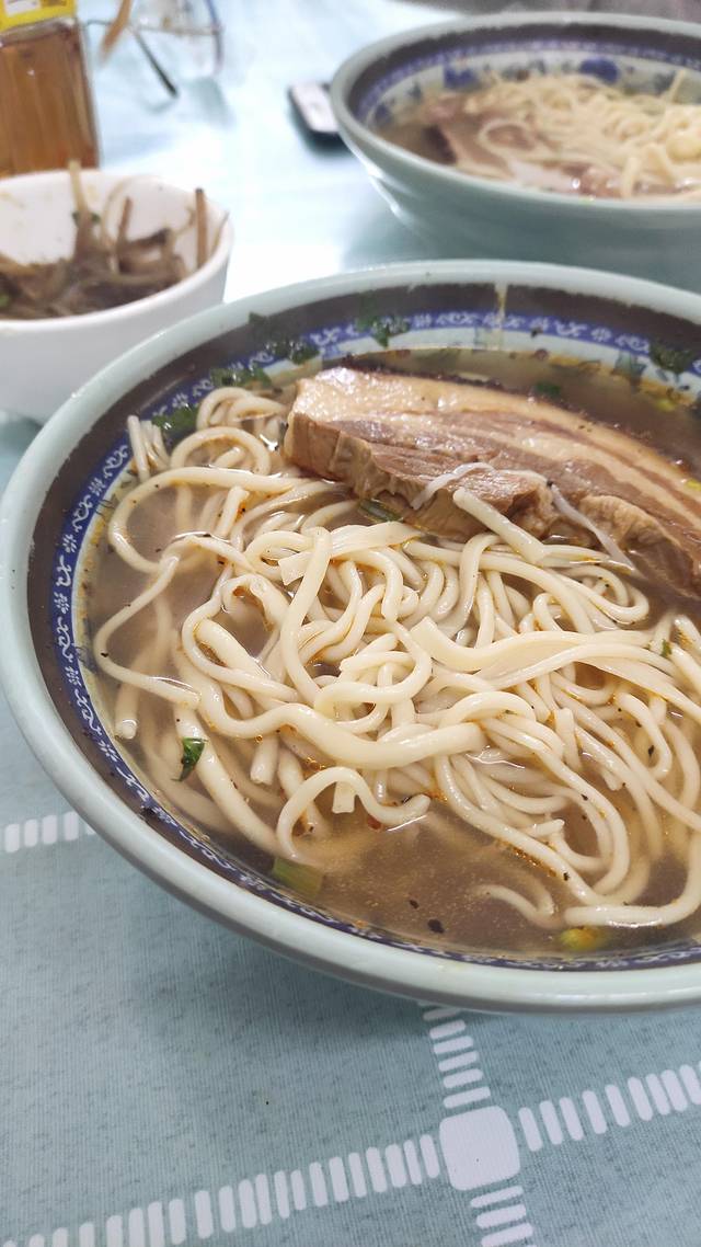 小祁拉面是分大小碗的,剩下的就是可以往上面加不同的料,三天里我吃了两顿拉面。第一次是小碗拉面配鸡蛋,第二次是大碗拉面配大肉,亲测大肉配拉面绝对的口感过瘾,劲道的面条配上卤过的大肉,一口接着一口超级满足。