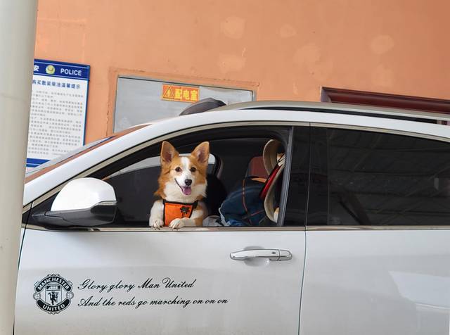 在加油站等待加油的狗子