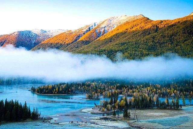 ① 禾木河:最好的时间是中午到傍晚,光线非常好,河水很蓝,叶子金黄,不拍照也OK,一个人可以静静地在河边呆上半天,脱了鞋下水体验一下,也是一件非常有趣的事。