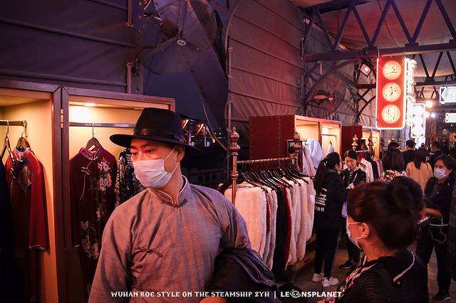 头顶上悬着五光十色的霓虹招牌,脚下踩着嘎吱作响的木质地板,两旁设有Art-Deco风格的老式商亭,有卖《知音号》的周边文创物件,也有提供民国服饰租赁、化妆、摄影等衍生服务,不过都是收费项目,80块起步,觉得不合适的话,可以像大多数人那样自备行头入场。