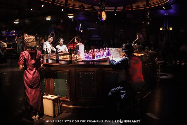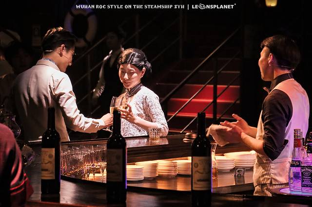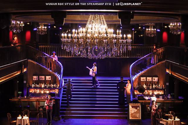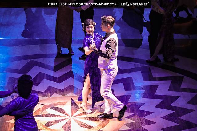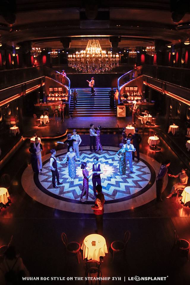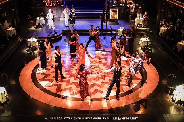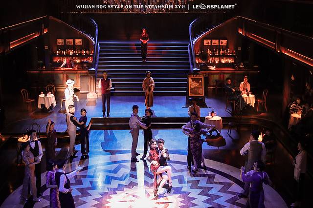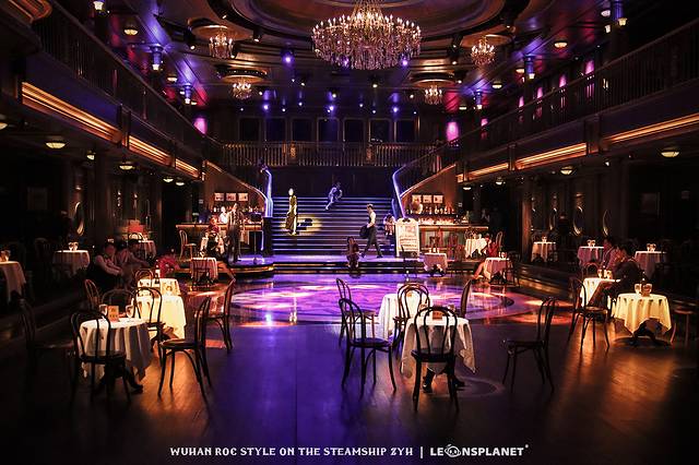 你要是喜欢看别人跳舞,就站在二层回廊,俯视众生,翩翩舞蹈尽收眼底;你要是本身就喜欢跳舞,那大可以再下一层走进舞厅,找一个船客专属的圆桌旁坐下,这样就有机会被邀请与演员共舞一曲,身临其境地感受一波摩登时代的歌舞升平,妥妥地从群演变成主演。