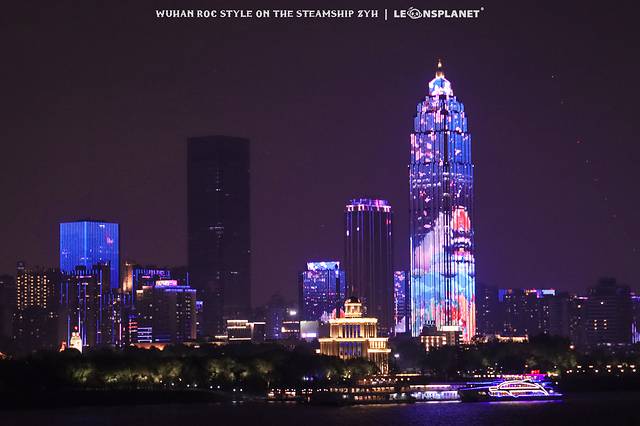 初夏的江风带着丝丝凉意迎面吹来,目光环顾四周,夜色中的江城已然万家灯火,水面映照出绚烂的波光,滨江的高楼大厦和横跨两岸的长江二桥披上璀璨的霓虹,它们连成巨大的城市荧幕,上映着动感十足的灯光大秀。