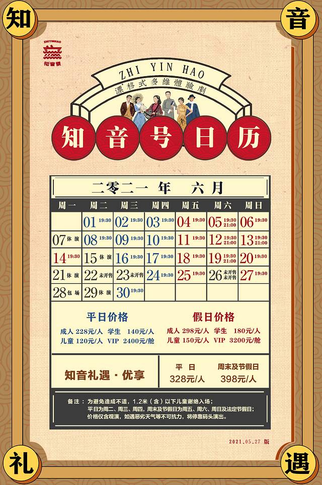 此外,《知音号》还推出了知音礼遇·优享套餐票,价格为平日328元/人、周末及节假日398元/人,主要是比普通票多了免费租用服装、免费饮料和伴手礼的项目。
