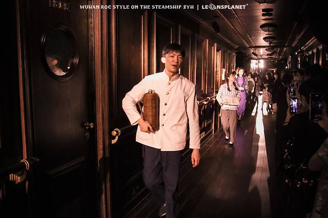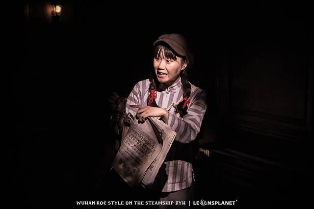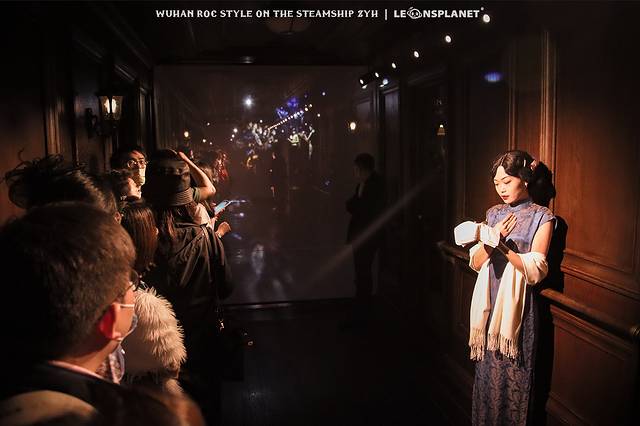 晚上7点半,「知音号」准时拉响启航的汽笛,在观众登船之前,游轮的三层船舷率先热闹起来,甲板上有人来回走动,他们穿着那个时代不同职业、身份的衣服,有的与送行者告别,有的诉说自己乘船的目的,有的还在与同行友人谈笑风生……随着追光灯不断地亮灭,演员和他们的故事悄然上线。