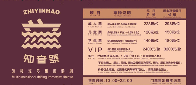 《知音号》体验剧不分座次设置门票,但会按照工作日、周末、节假日,以及成人、儿童、学生区分票价。建议工作日的晚上,带上学生证前来观演,既避开人流又经济实惠。另外,部分APP售票平台还有少许优惠。