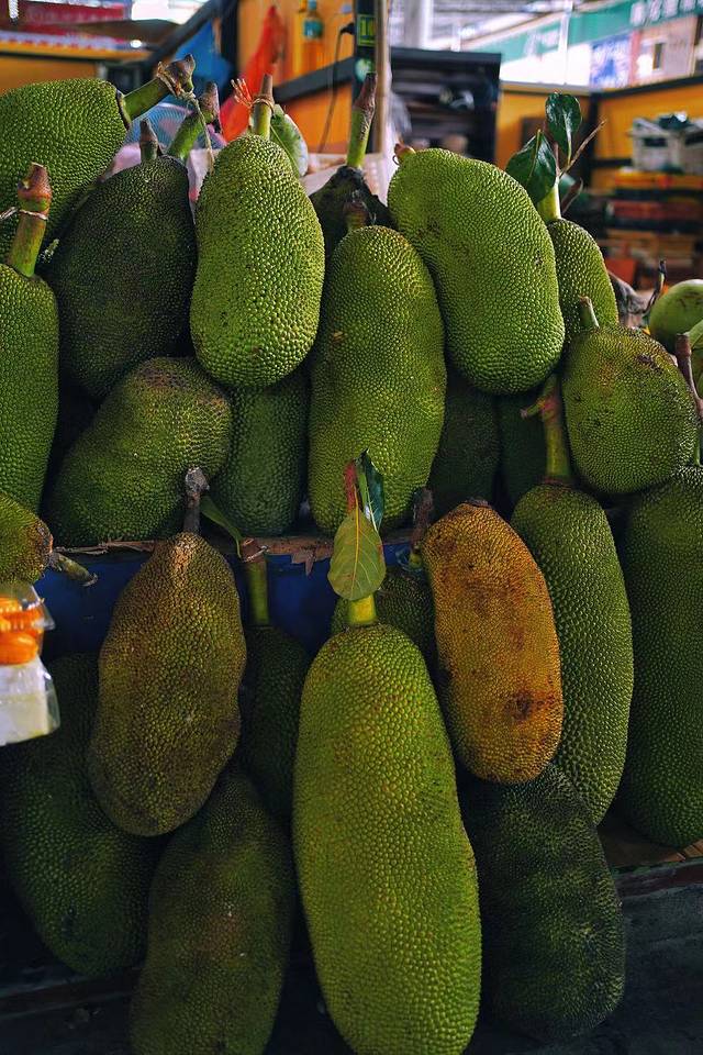 菠萝蜜也是西双版纳当地特产,几乎每个摊位都有。