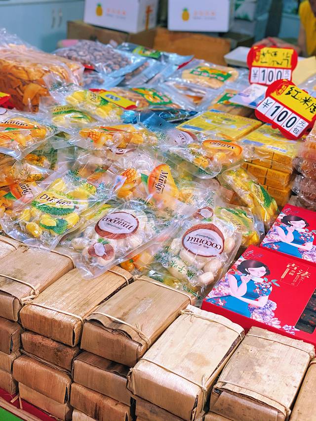这里的水果种类真的是太多了,一眼看过去最抢眼的就是大青芒,我也去问了问价格,10斤50元左右包邮。价格很实惠,口感也是绝了,是一点筋都没有的那种,芒果布丁的口感。