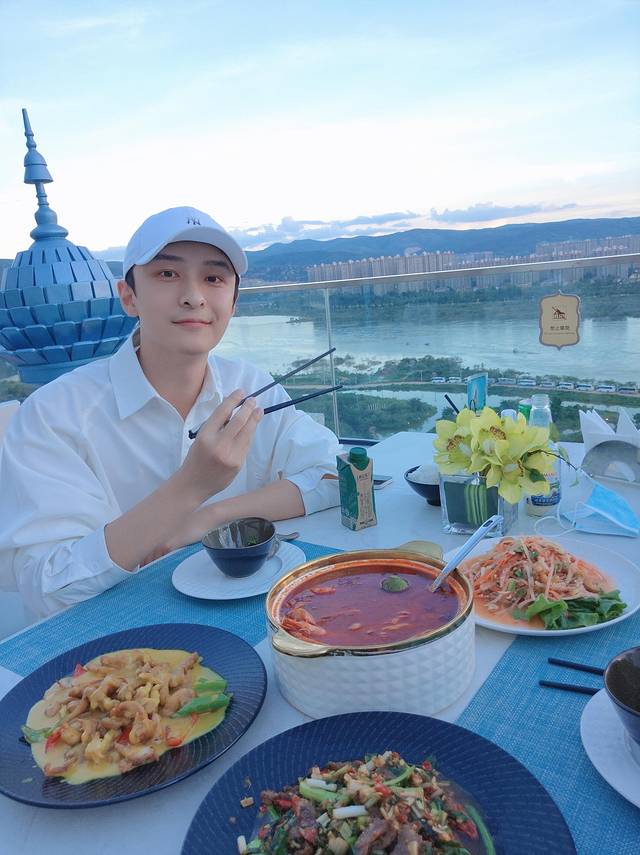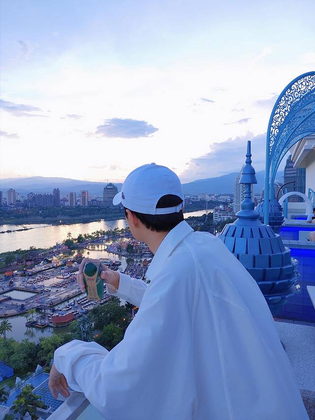 酒店17楼还有个巨美的露台餐厅,如果你和我一样懒得在网红店排队,又想拥有好的美食体验,那我真的非常推荐这里。我们大概下午6点左右到餐厅,选择了坐在靠澜沧江的一边,可以俯瞰到整个星光夜市和湄公河六国水上市场。风景满分!