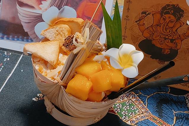 傣味拌菜是类似青木瓜沙拉的口味,傣式烧烤也会配酸辣的蘸料。不得不说西双版纳可真是酸辣口星人的天堂!