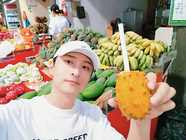 西双版纳因为得天独厚的地域和气候优势,盛产各种新鲜甜美的热带水果。来这里就一定要安排一顿水果宴呀!我们问了下当地居民,他们买水果都喜欢去曼阁水果批发市场,说最好吃最实惠的水果都在这里。从蘑菇屋回来我们立刻安排上!