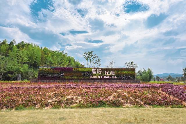走进高岭花海,五颜六色的鲜花竞相开放。蓝天白云下,烟紫色的马鞭草,随风摇曳,让人沉醉在花海之中,热爱生活和鲜花的人们,纷纷拍照打卡。高岭花海由多彩花艺、粉彩花田、颜色釉花谷、青花岭、玲珑花园五个片区组成,构成了研学旅游、趣味游乐、浪漫休闲、银发养生等体验于一体的花海产品。