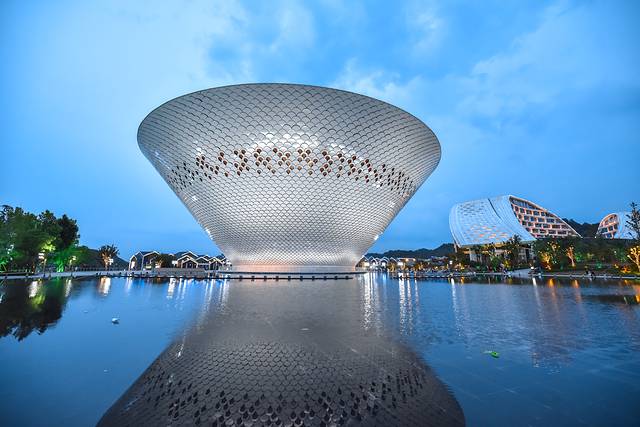 艺术中心的外墙采用纳米喷涂铝单板,白天洁白如玉,夜晚可通过4D成像投影技术,在外墙上勾画出变幻无穷、瑰丽多彩的唯美意境。据介绍:“它是目前全国最大的瓷碗,突出 景德镇 的陶瓷文化特色。”建成后将成为 景德镇 艺术殿堂和文化地标。不得不说,这样的建筑,真的是又能增强游客对 景德镇 、 中国 陶瓷的印象,还能寄情于景,在炎热的夏季,这真的是一个不错的打卡佳处,况且离酒店也是非常近。