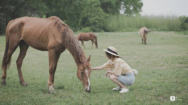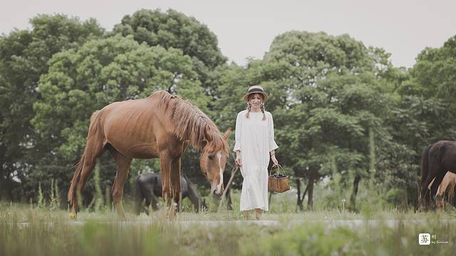 附近有个马场,农场主时常会把马儿们放出来溜溜,好在马儿的性格温顺,合照时也还算配合,要是没有它们,画面可就没这么生动了~