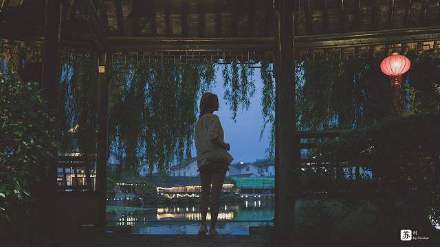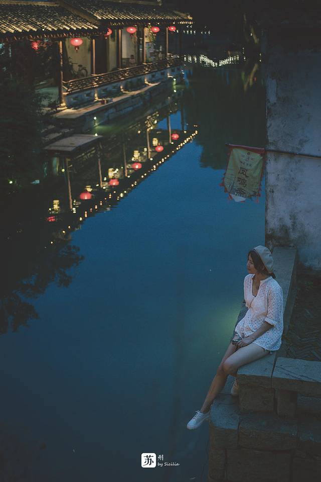 朦胧夜色里,坐在古镇的河岸边,被水汽急匆匆包裹一身,夜色也温柔似水,初夏傍晚的气流吹来柔软的风,凉爽了裸露的肌肤。叶先生说的不假,苏州是个让人留恋的地方。