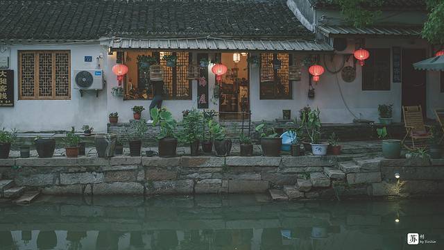 古镇商业气息也掩不住苏州的荡荡古风,苏州人的生活节奏舒缓惬意,不会过分在意金钱,本着钱不求多,够用就行的原则。所以本地人做生意都不会起早贪黑,即使天色还没完全暗下来,沿街的商铺就已经打烊收工了。