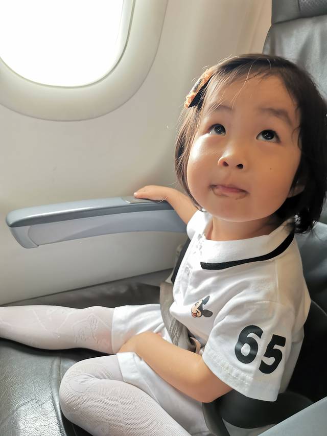 小朋友已经可以独立坐飞机,还能自己系安全带。机票人均350,小朋友也要买机票。