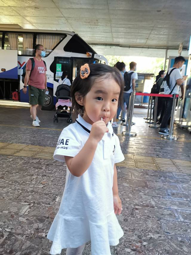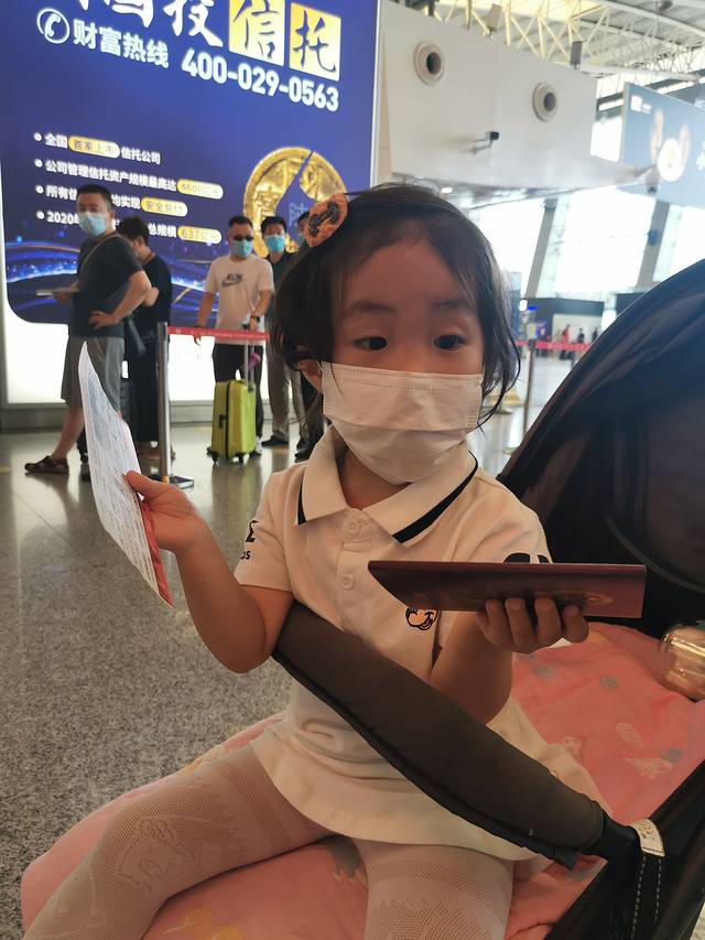 到机场啦,给小朋友很早就办理了护照,坐飞机很方便。