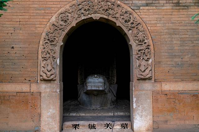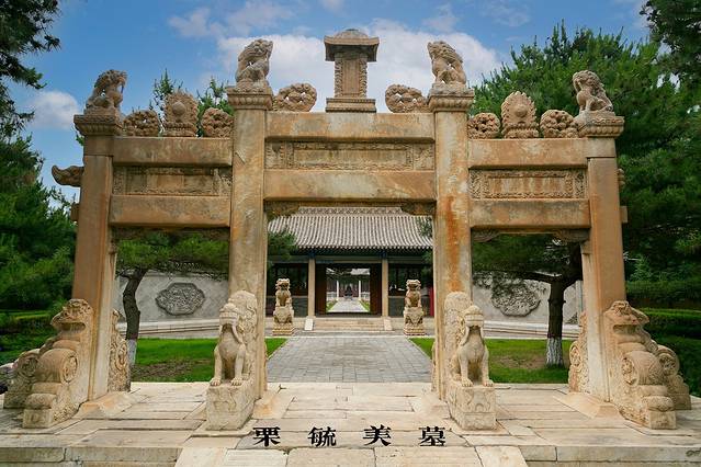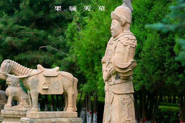 如今,走进栗毓美墓,不仅有汉 白玉 牌坊,在墓道两侧,还对称地排列着五组十尊石像生,有羊、虎、马、武将、文臣,高大威严、气势磅礴。