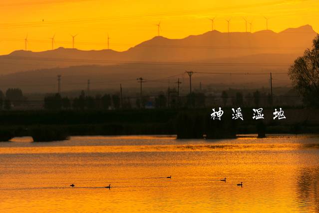 在临近日落时分,我们来到了神溪湿地公园。这里碧波荡漾,鱼翔浅底,雁掠长空,独特的塞北水乡风光,着实令人难忘。