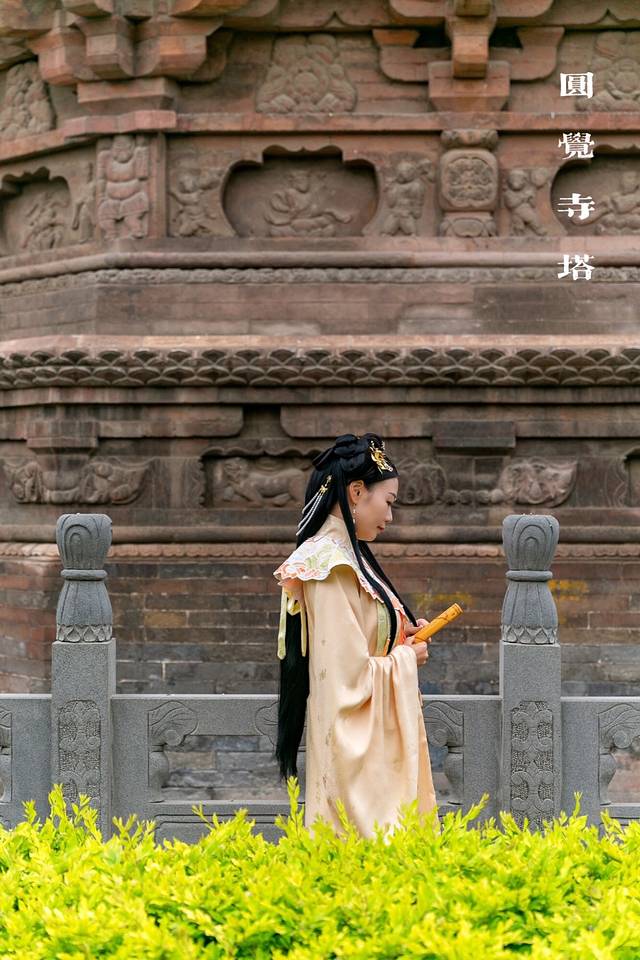 走进细看,塔座基四周雕满砖刻浮雕,其中有舞乐人像40个,有的作长袖舞,有的作长绳舞,有的手抱琵琶,有的撑羯鼓吹羌笛,有的拍击板,姿态各异,逼真动人。
