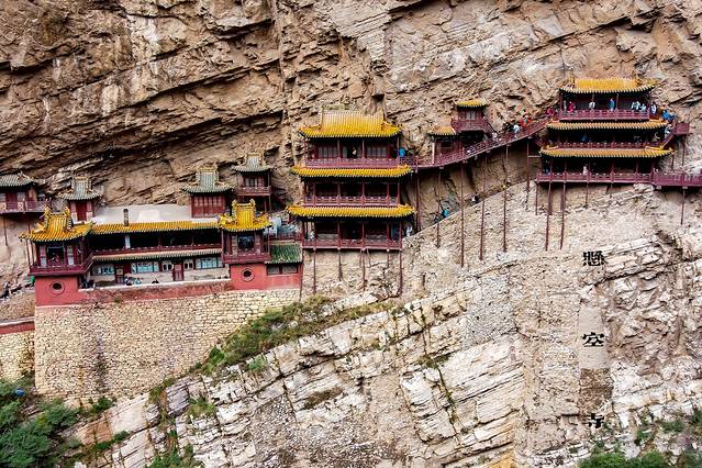 作为恒山十八景中“第一胜景”,悬空寺建成于公元491年,是 中国 仅存的佛、道、儒三教合一的独特寺庙。其置身于幽深僻静的山谷之中,镶嵌在崖壁之上,层楼高悬,曲榭斜倚,栈道飞架,廊腰缦回,仅能容纳一人小心翼翼通过。