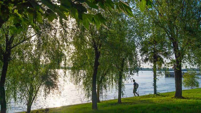因此每到周末,就会有很多游客们前来,林荫间可以闲庭信步,草坪上可以跃马扬鞭,一望无际的大麦田,风吹皆是稻香,仿佛是回到了美好的童年,望着远处的长江,不禁想起一句诗“小舟从此逝,江海寄余生”。