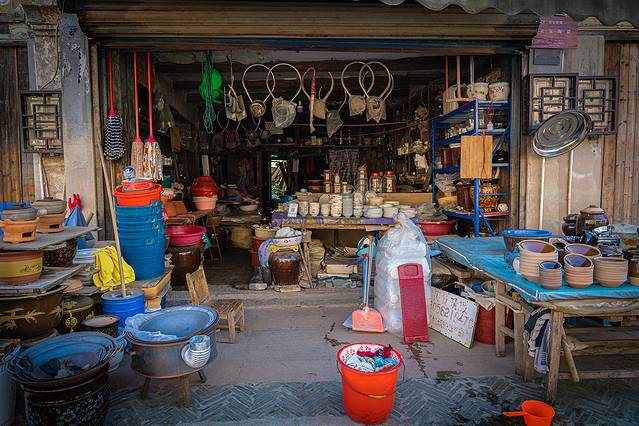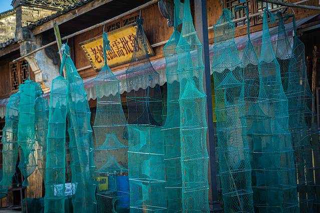 在这里,你感受到的是最淳朴的古镇气息,安静的街道,只听得见孩童们玩耍与大人们日常交谈的声音,一些沿街的老店铺依旧保留着百年前的样子,百货店、渔具店、理发店、杂货店,岁月斑驳的痕迹在牌匾上体现的淋漓尽致,透过渔网的缝隙看向街道,和千年前又有什么区别,沿着长江一代代大通人的生活印记,与这一份不加修饰的古朴,才让人来到这里能感受到最真的东西。