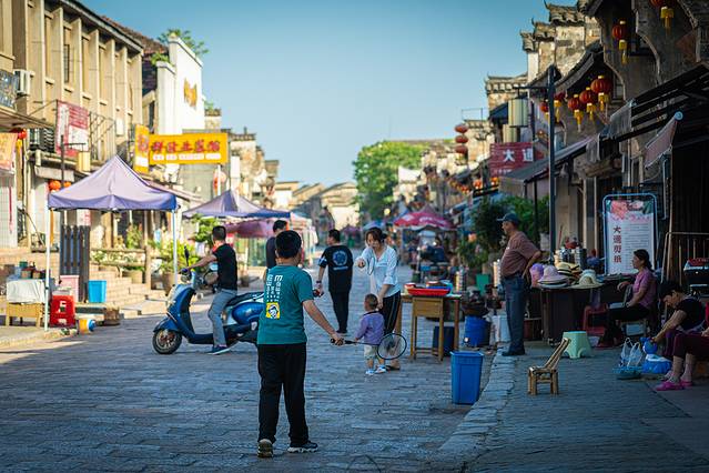来到这里给我的第一印象,便是它极为宽敞的街道。你可能从未见过有哪个古镇的街道可以这样的宽,打羽毛球都不是问题,两侧店铺林立,商品琳琅满目,老百姓们的生活在这里不紧不慢,悠哉上演。这条老街又叫澜溪老街,可别小瞧这里,清末明初,这小小的古镇上居住了10万余人,有着“小上海”的美誉,更是与安庆、蚌埠、芜湖并列为安徽四大商埠之一。