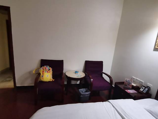 酒店一看就是装修有年头了,有院子,自驾来的可以停车。分前后楼,前台所在楼有电梯,行李多的会安排在这里。我只有背包斜跨,被安排在前楼四楼,楼梯,没有电梯。