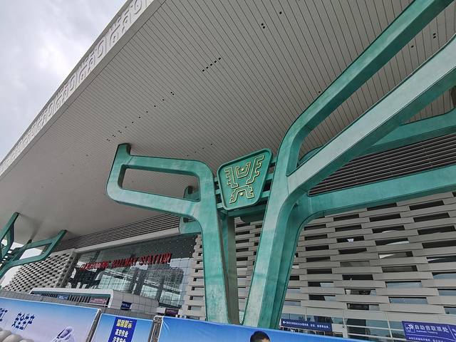 跟着指示标识,走出去,看到高铁站的造型,都是三星堆青铜样式的,有点可爱,萌萌哒!