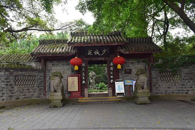 跟着导航骑车大概5分钟就到了,武侯祠是9点开门,我一开始到的这个是西门,门开了看好多人都往里进,我也跟着进去了,原来这里是一个公园,是不需要买门票的。