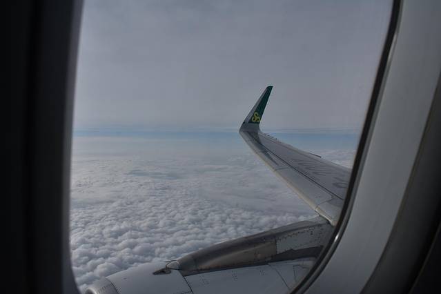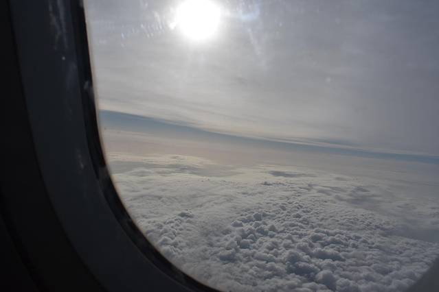 等了两个多小时终于可以重新登机,说是因为大连雷雨天气造成延误,不管怎样,能飞就好,继续晃晃悠悠摆渡过去爬楼梯。
