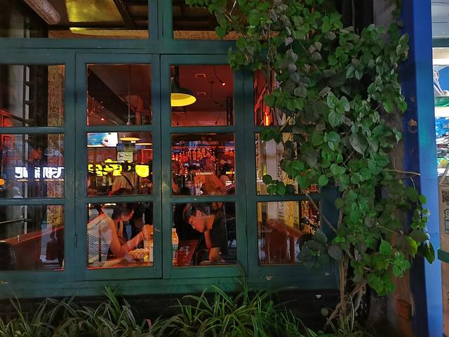 现在没有歌手驻唱,但是酒吧里音响放着好听的歌曲。