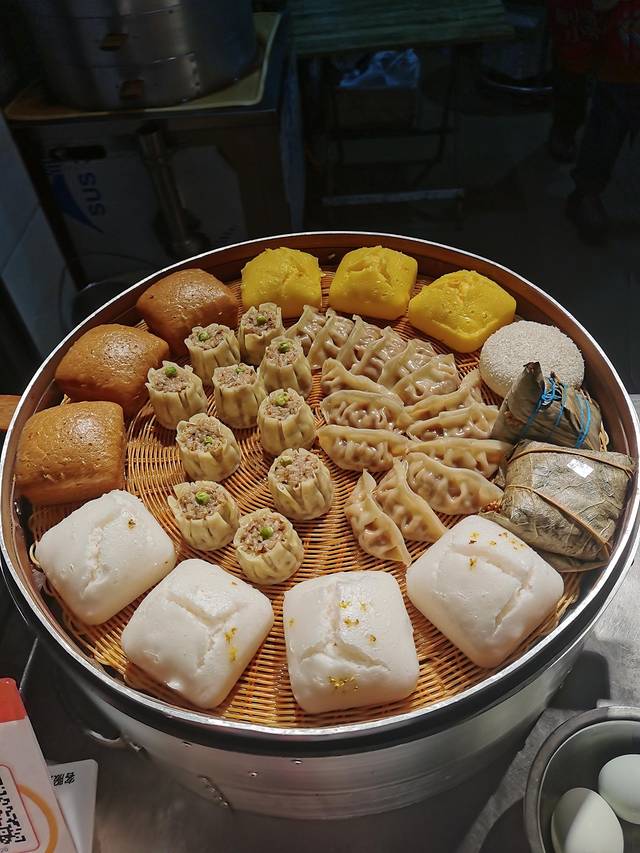 酒店出门右转路口看到一个早点摊儿,好丰盛啊,后来买了一笼小笼包,一个燕麦粥。