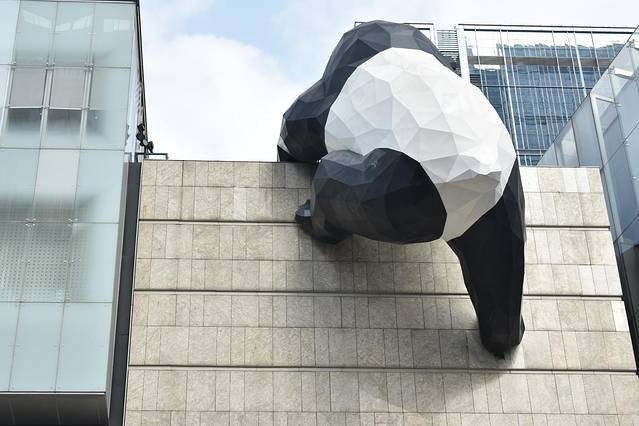 不愧是熊猫之城,连地铁列车里面的扶手都是熊猫头的形状。