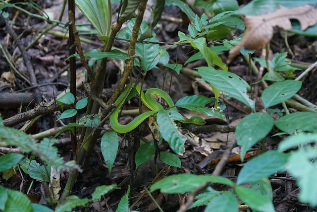会偶尔遇到一些生物,竹叶青(🐍)是雨林里的常客,不过无毒无害,会在一个地方栖息很久,只要你不惊扰它,就可以和平共处了!