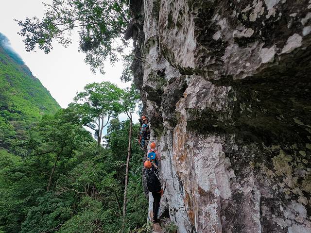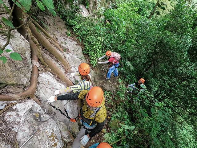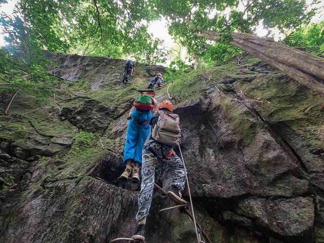 前进吧勇士们,年龄最小的被安排在向导身后,万一没有体力向导会用备用绳索把她拖上来,但是小朋友真的很励志!全程独立完成,后面的大朋友们再喊辛苦真的有点汗颜了!