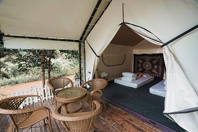 离宝牛山庄不远,轻奢风帐篷,门前有很大块的草坪,旁边还有稻田,每天早晨山间云雾缭绕仙境感很强,非常出片!不过卫生间在外面哦