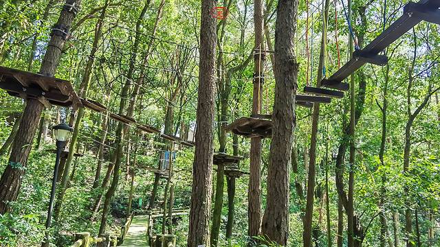 住在红星坪温泉精品酒店,白天无聊的时候可以在隔壁的丛林穿越里挑战一下自我,这是设置在古树群众的户外丛林穿越,规模不算很大,但什么都有,还是有点难度的哦,不过很刺激。为什么这么说呢?