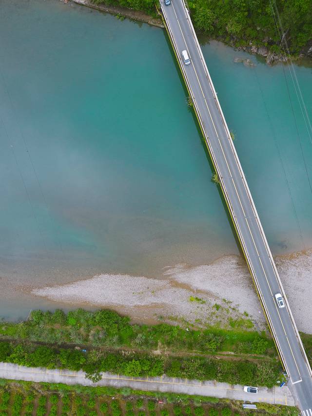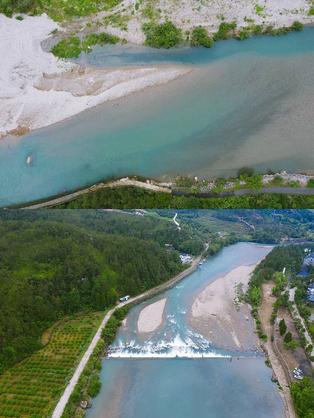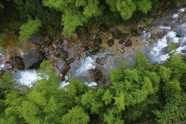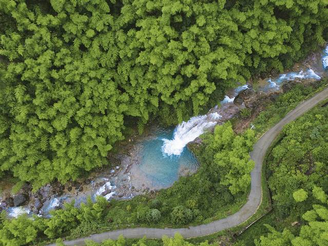 当我们下了高速开始走盘山公路时,在路边发现了绝美的景色,也就是龙潭头村的河水下游段,与盘山公路一路缠绕在一起,在地图上这条河流是没有名字的,一路向北后,与“永安溪”合流。