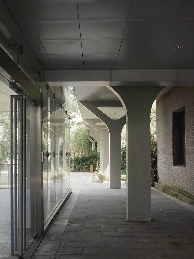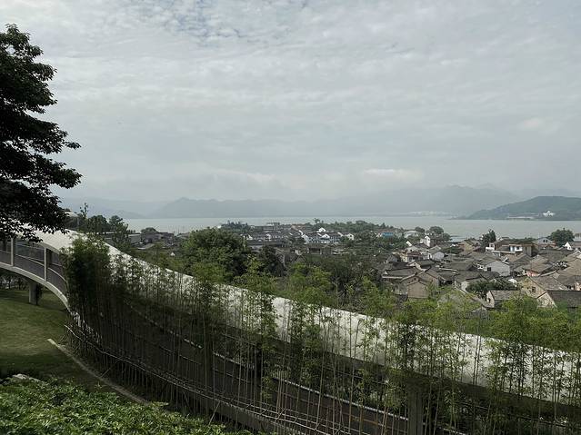 白色顶棚长廊下非常阴凉,沿途也可欣赏到东钱湖的美景。