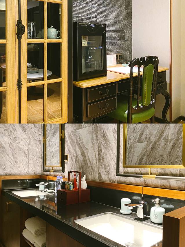 房间是风格是偏复古型的,将金色运用的恰到好处,既温馨也不会显得土气。