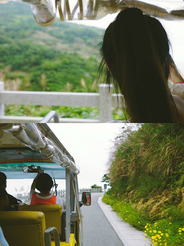 坐在观光车的最后一排,速度带来的风感扫去了一些闷热,沿途的景观有一种回到小垦丁的错觉。