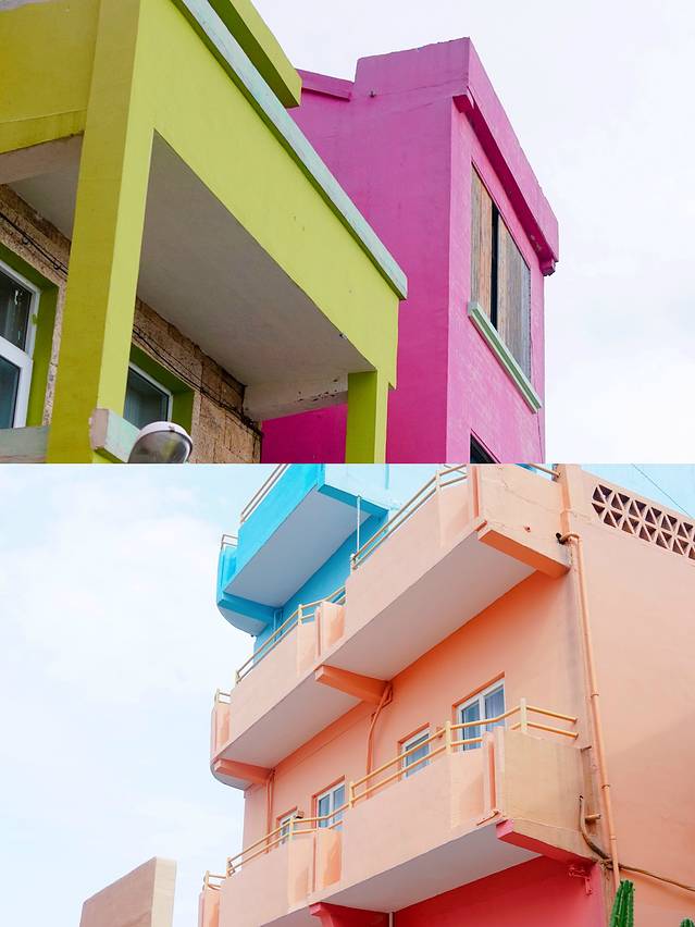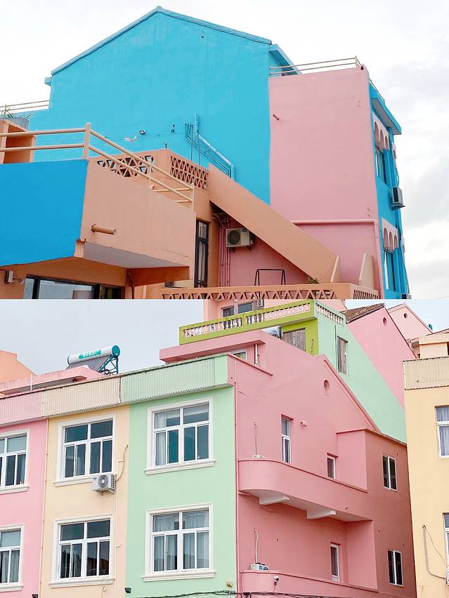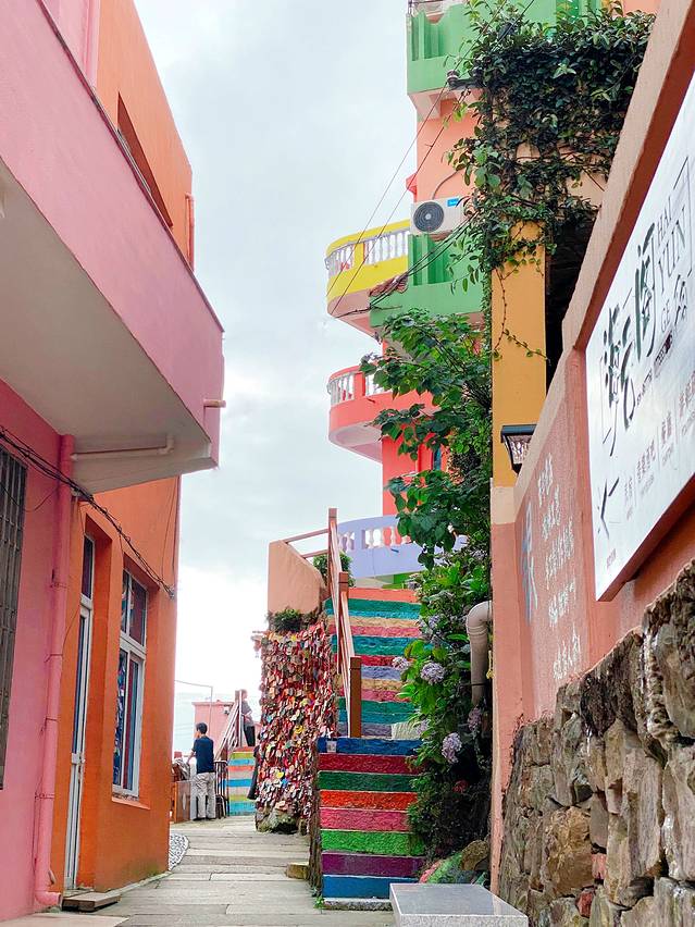 终于在天黑前抵达了心心念念几年的马卡龙色小房子;几年前,由政府规划把小箬村的建筑外立面打造成了彩色,使得这片三面环海的小渔村变得很有活力。