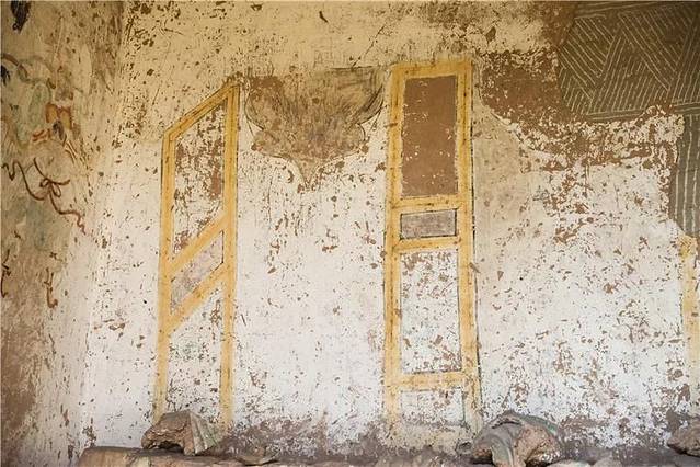 石窟除却零星的石雕可见,石壁上还有精美绝伦的壁画独具风采。画中宽袍大袖、羽扇纶巾者似在谈笑风生,在残存的壁画中能捕捉、想象几笔线条勾勒的故事,这些都是古代人们生活的生动写照。